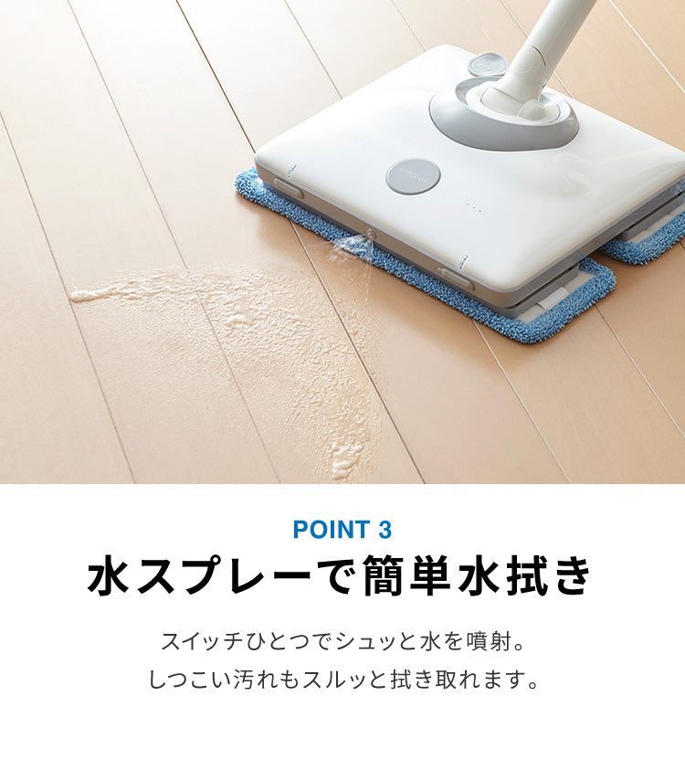 電動モップ、充電式、コードレス、拭き掃除、ハンディ、スティック、伸縮、自走式、水噴射機能