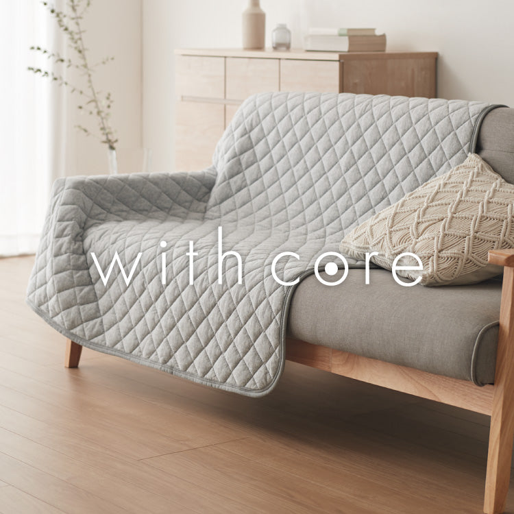 with、core、ウィズコア、マルチカバー、キルトマルチカバー、ソファカバー、ブランケット、掛け布団、掛布団、コアヤーン糸、コアヤーン繊維、複合繊維、吸水、速乾、乾きやすい、再生ポリエステル、エコ、SDGs
