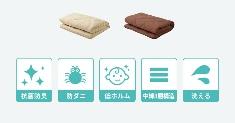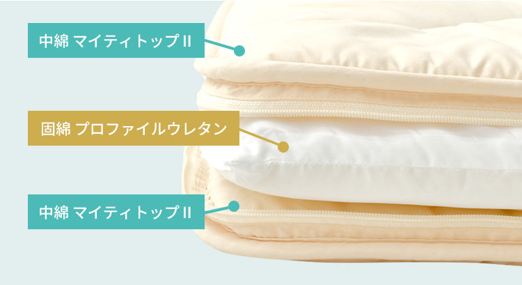 三層敷布団 シングル 100×210cm TEIJIN マイティトップ 体圧分散 抗菌消臭 防ダニ 低ホルム 洗える 固綿入 ロング テイジン
