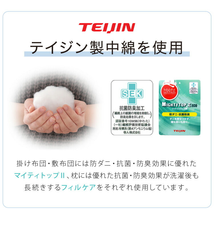 詰め物:ポリエステル綿(TEIJIN マイティトップII50%使用)