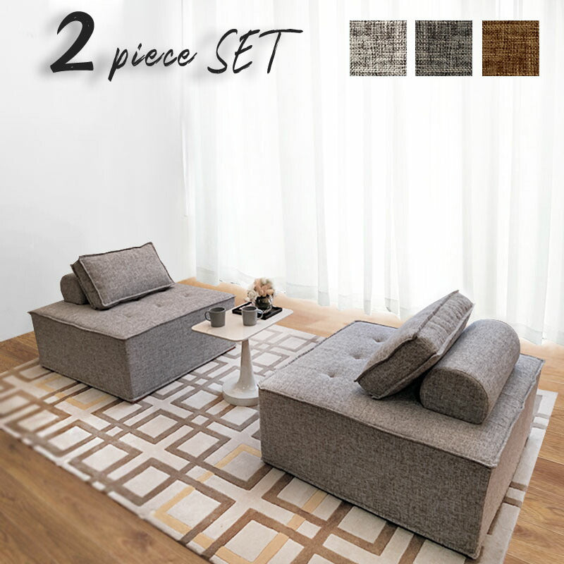 ソファ コンパクトソファ 2個セット 二人掛け 幅99cm 奥行99cm 高さ41cm クッション付き アームレスト付き フットレスト付き