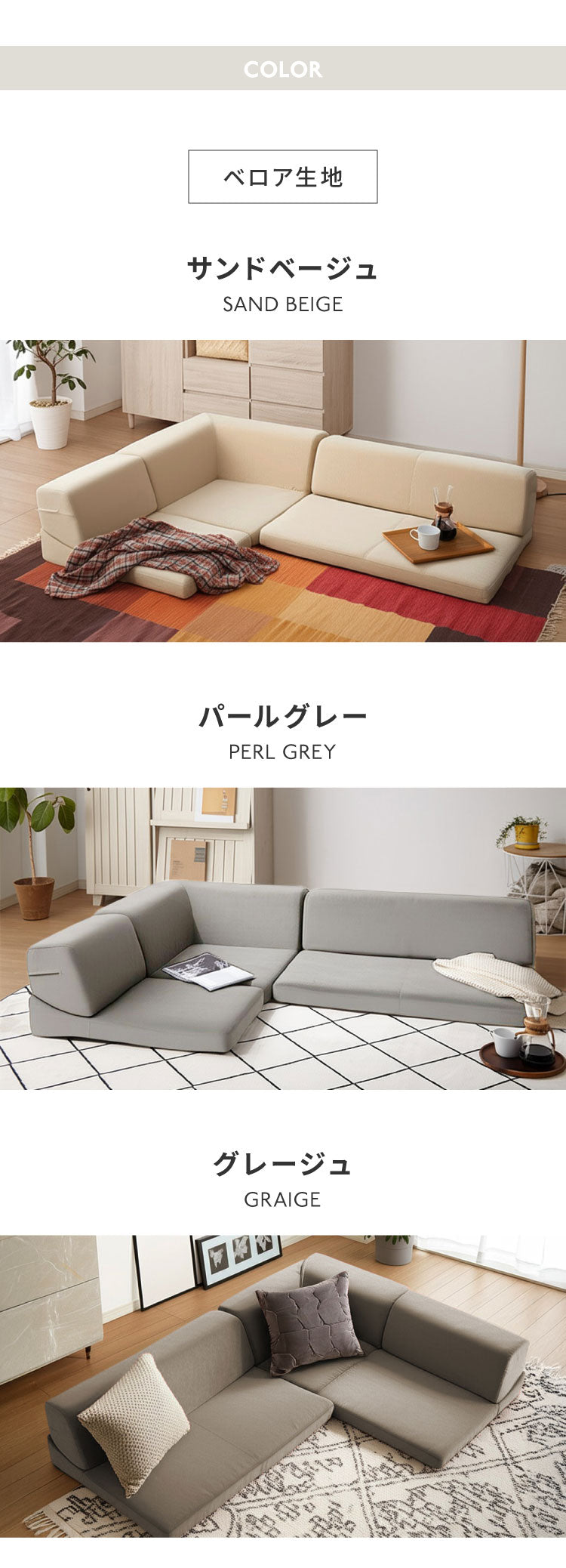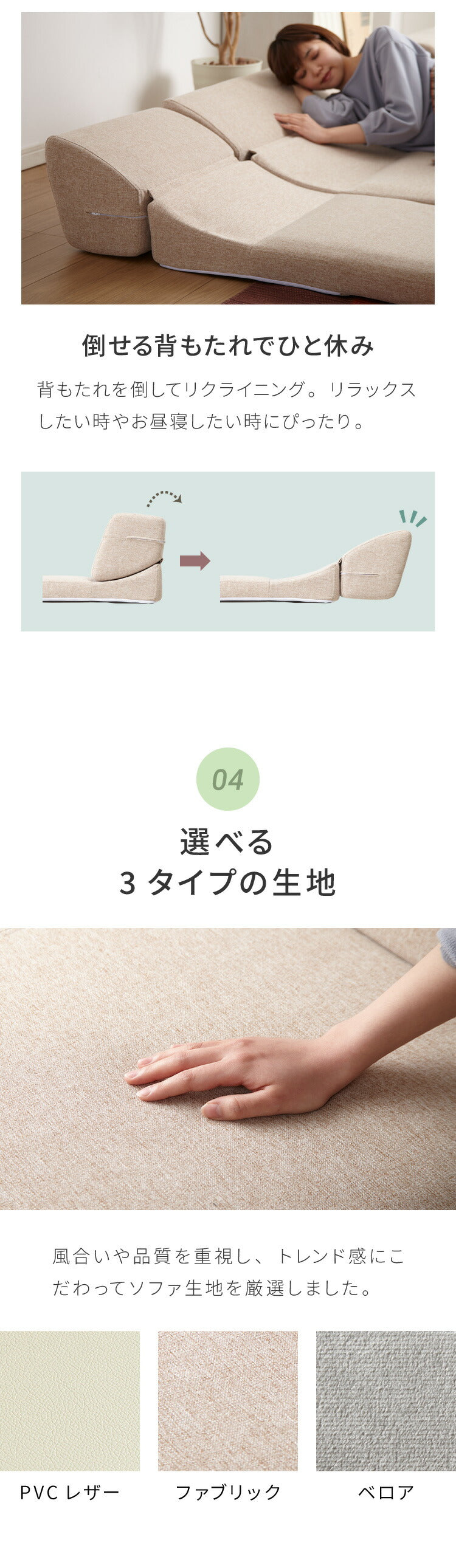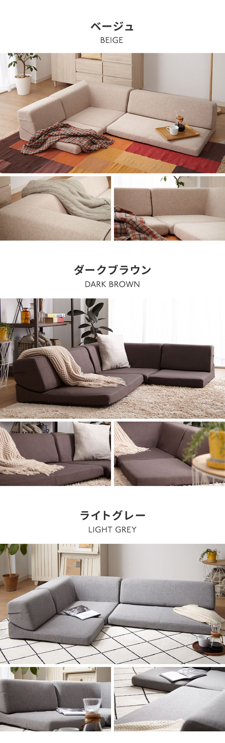 組み合わせ無限大。 来客時も、お昼寝も。変幻自在な3人掛けローソファ。