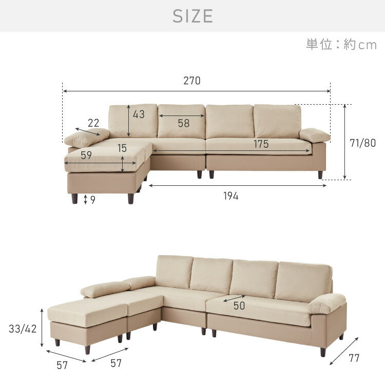 カバーリング ソファ 洗える カウチソファ 大きい ソファー ワイド 大型 L字 4人掛け 3人掛け オットマン コーナーソファ ポケットコイル 天然木 脚 ローソファ カウチ おしゃれ 北欧 リビング