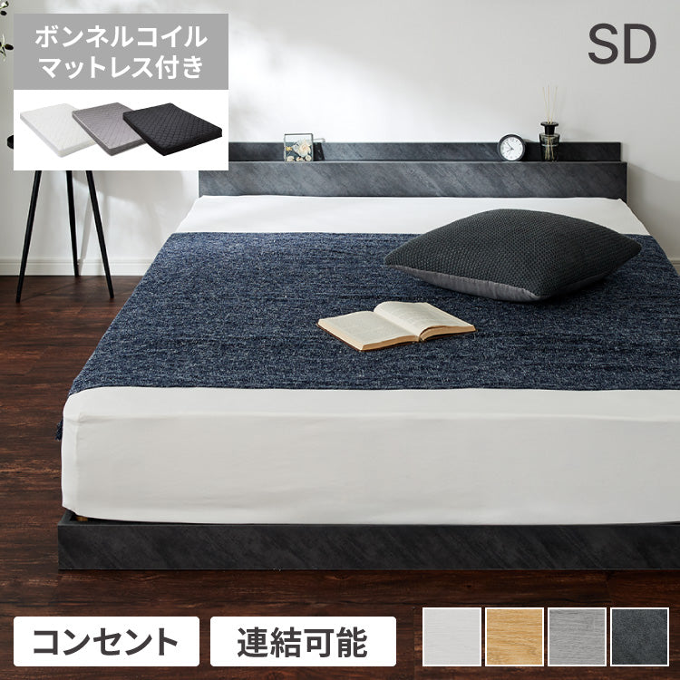 連結金具付き フロアベッド ローベッド セミダブル ボンネルコイルマットレス ベッド ベッドフレーム 2口コンセント付き 連結ベッド すのこベッド 宮棚 ロータイプベッド マットレス付き 一人暮らし(代引不可)