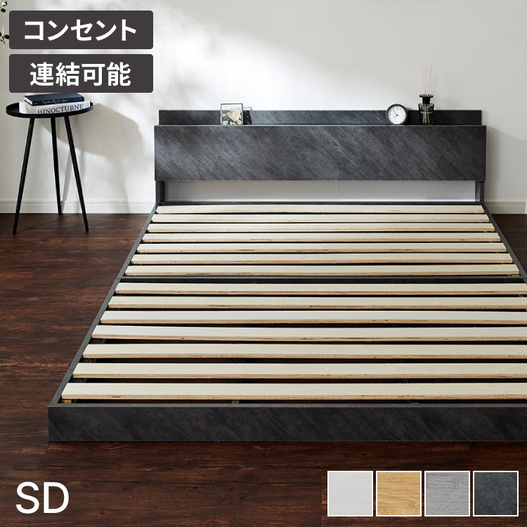 連結金具付き フロアベッド ローベッド セミダブル ベッド ベッドフレーム 2口コンセント付き 連結ベッド すのこベッド 宮棚 ロータイプベッド フラット式 フレーム単品 一人暮らし ファミリー