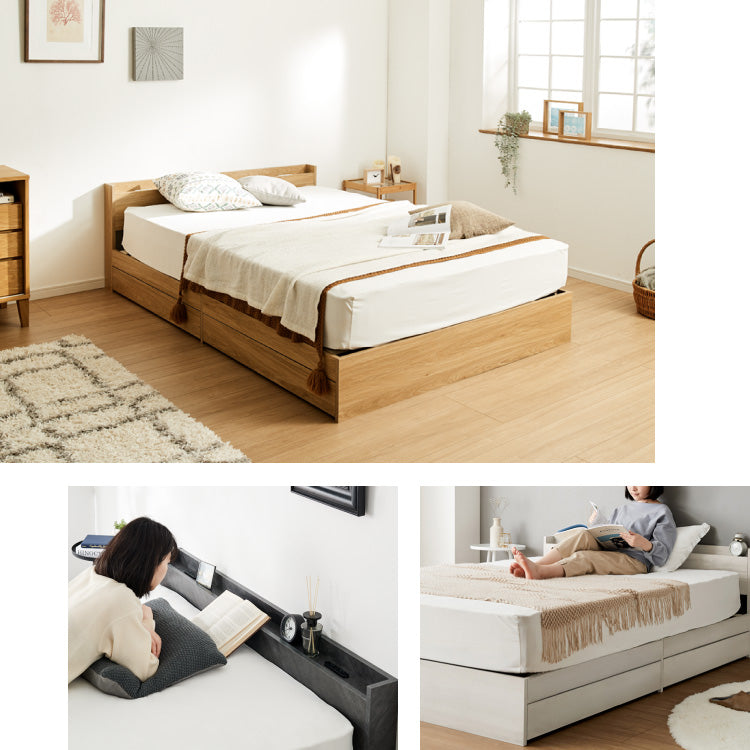 連結金具付き 収納ベッド セミダブル ベッド 収納付き ベッドフレーム 2口コンセント付き 連結ベッド すのこベッド 宮棚 引き出し付きベッド フレーム単品 一人暮らし ファミリーベッド