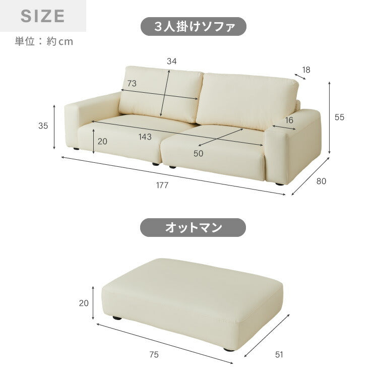 3人掛け(約):幅177×奥行き80×高さ55cm